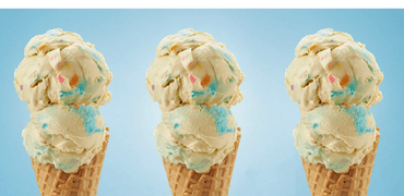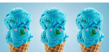 Blue ice cream with multi-colored bubble gum pieces mixed in